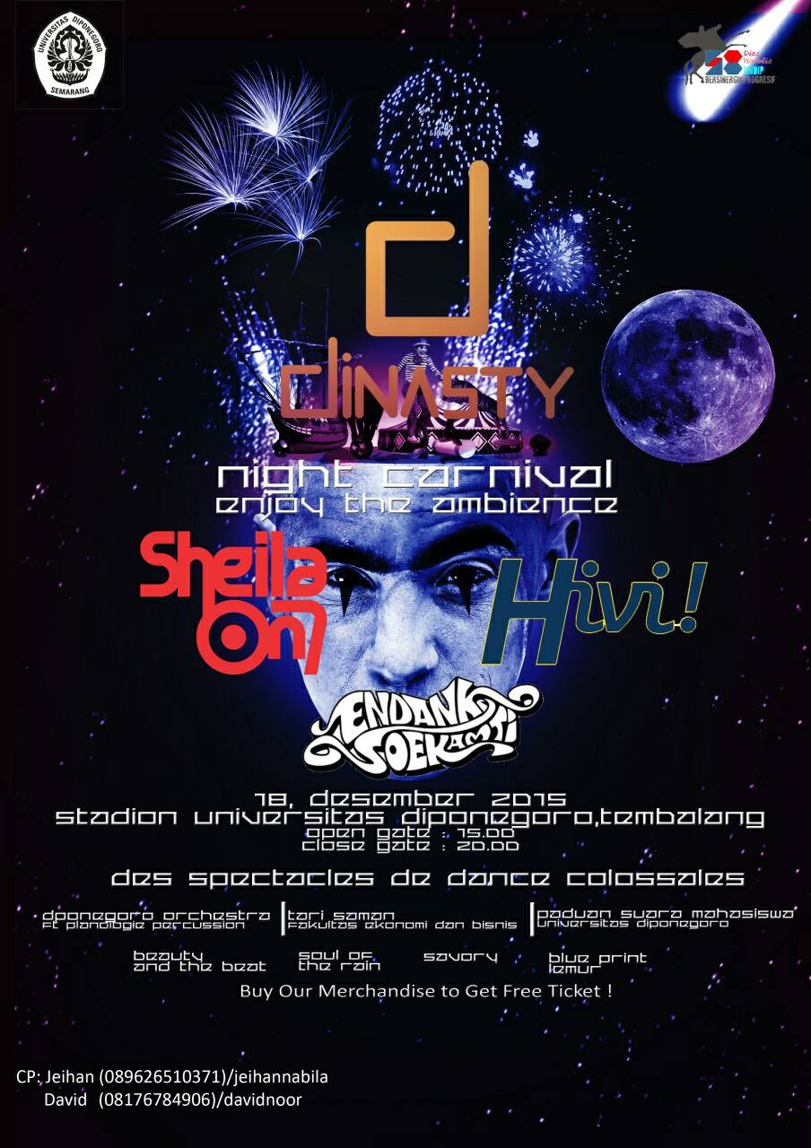 Tembalang, dalam rangka memperingati Dies Natalis Undip yang ke 58 undip menggelar konser dengan menghadirkan beberapa band yang terkenal. Acara yang bertajuk Dinasti Nigh Carnival Enjoy the Ambeince ini akan menghadirkan band legendaris Sheila On 7. Selain itu Akan ada juga penampilan dari Hivi dan dilengkapi dengan Endank Soekamti.
